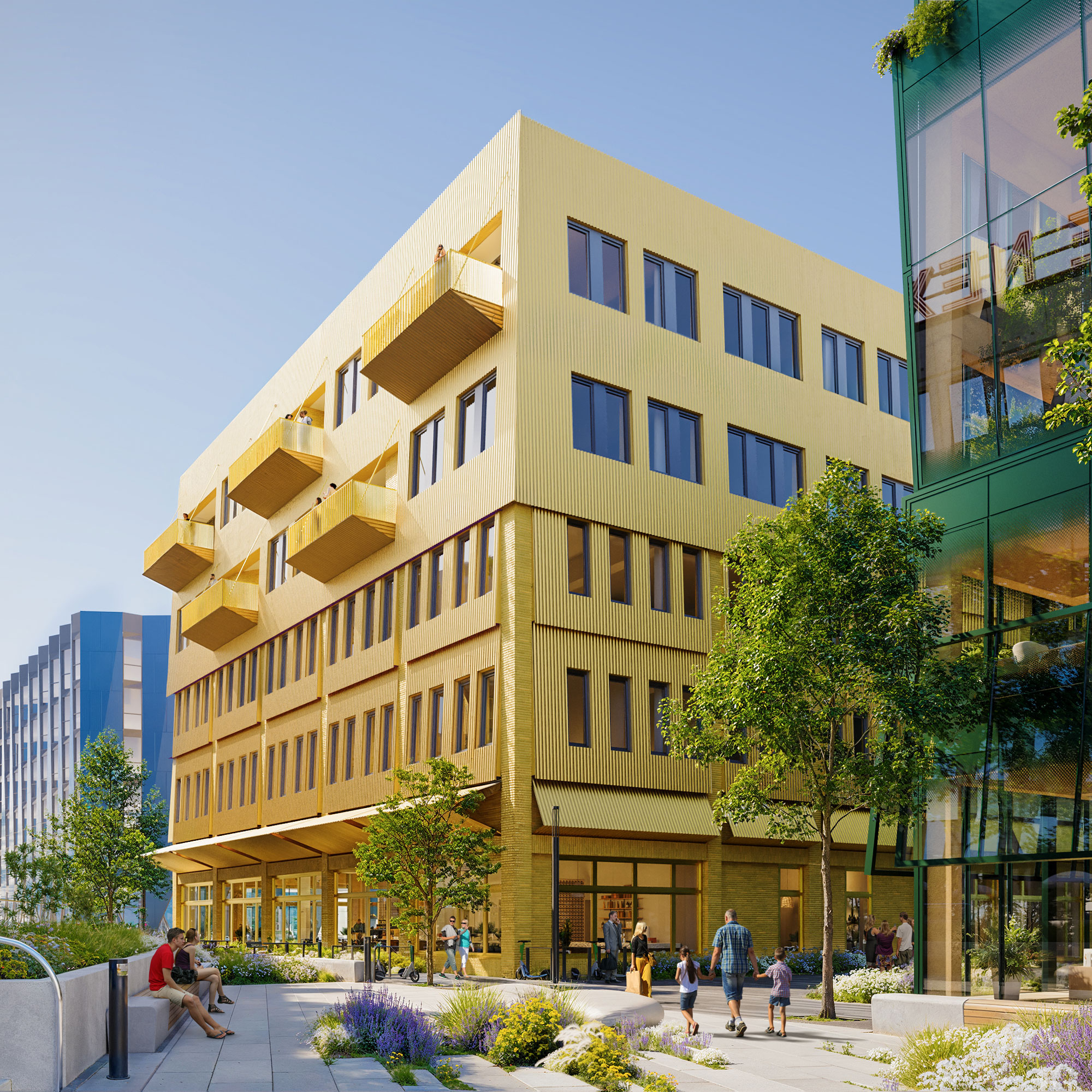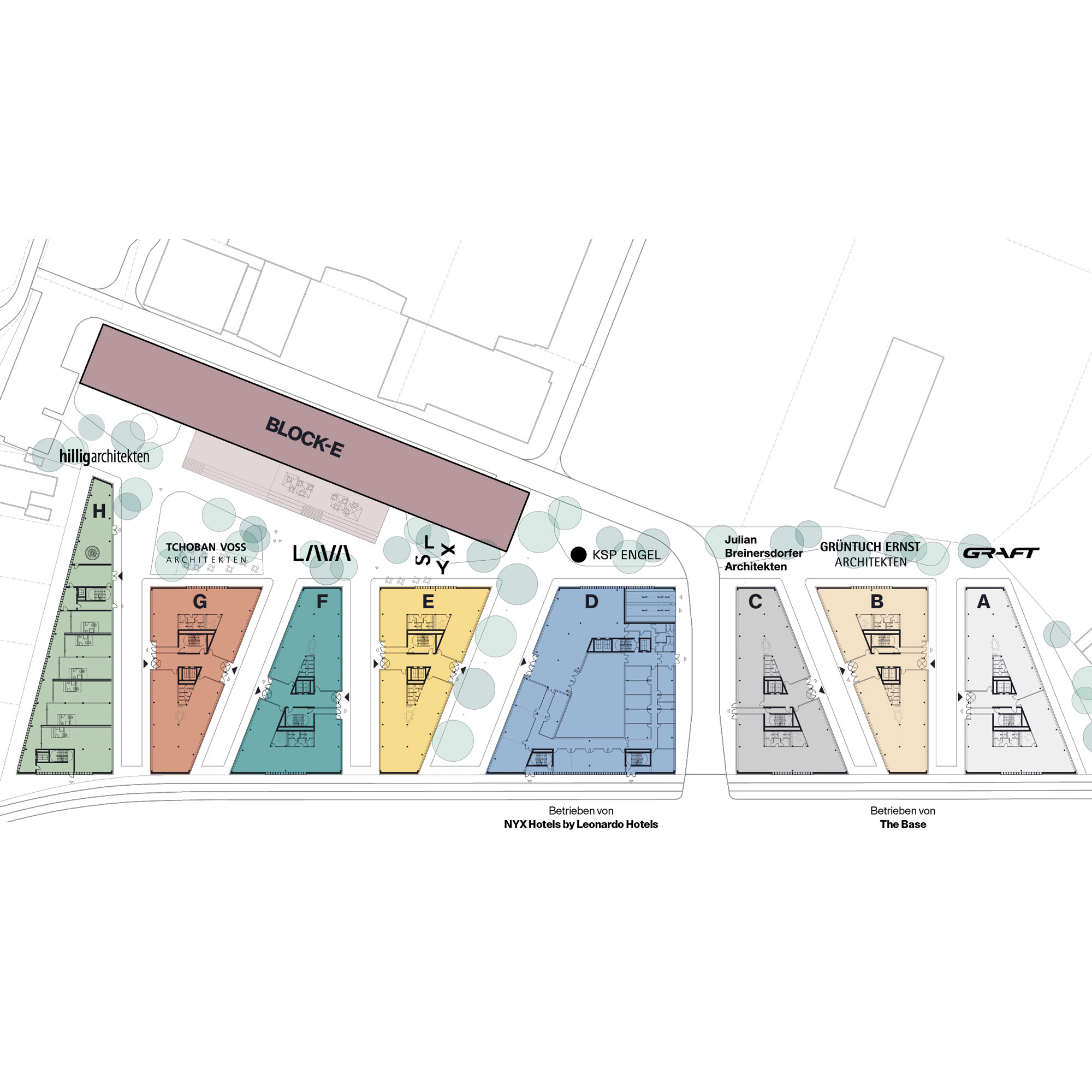 Basierend auf dem städtebaulichen Entwurf von KSP Engel, hat der Projektentwickler Trockland das Konzept weiterentwickelt und mit acht Berliner Architekturbüros zu einem charakterstarken urbanen Gefüge gestaltet.