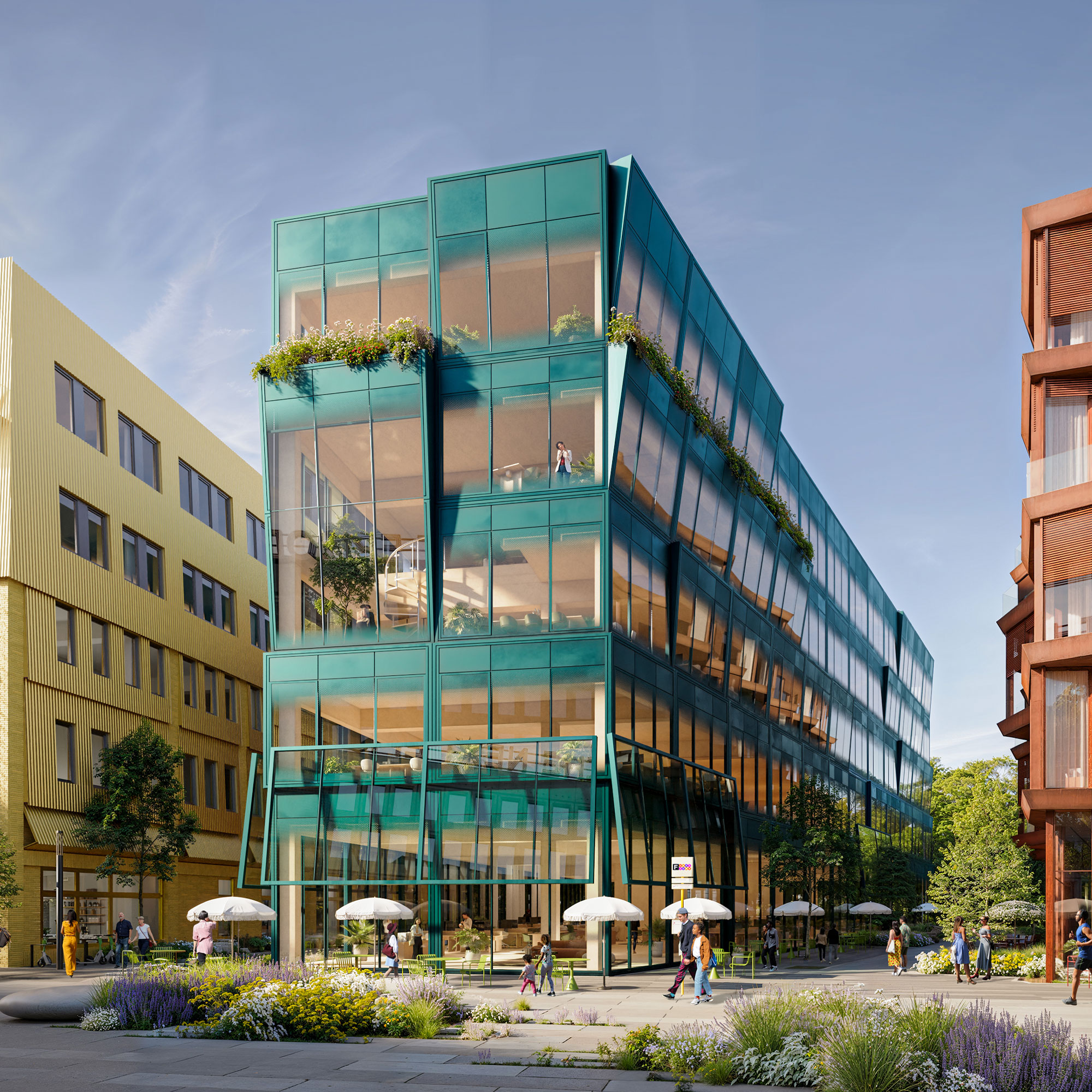 Valerie Kerz – LAVA – Station F: Holz-Hybridbau mit parametrisch optimierter Gebäudehülle für maximale Transparenz ohne Überhitzung. Fassadenintegrierte Pflanzenbeete für Mikroklima und Biodiversität.